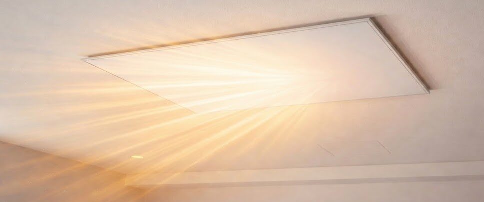 Durch das optimierte heatness® Heizelement gelangt die Infrarotwärme genau dort hin, wo Sie sie brauchen: in den Raum und zu Ihnen. heatness® Infrarotheizungen strahlen Gegenstände, Wände und die Decke an.