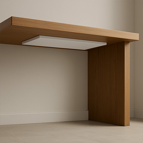 Die Infrarotheizung Schreibtisch erwärmt nicht die Raumluft selbst, sondern gibt Wärmewellen ab, die sich in ihrer Umgebung ausbreiten. Durch die Anbringung auf der Unterseite des Schreibtischs treffen die Infrarotstrahlen zuerst auf den Fuß- und Beinbereich. So kann für punktuelle Wohlfühltemperaturen gesorgt werden, bevor auch der restliche Raum erwärmt wird.