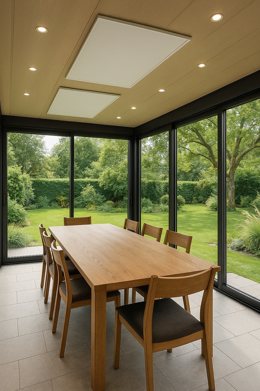 Wenn die Tage noch kühl sind, sorgt eine Infrarotheizung von heatness für sofort spürbare, angenehme Wärme im Wintergarten. Statt die Luft zu erhitzen, werden Flächen und Personen direkt erwärmt was ideal für Räume mit viel Glas ist: